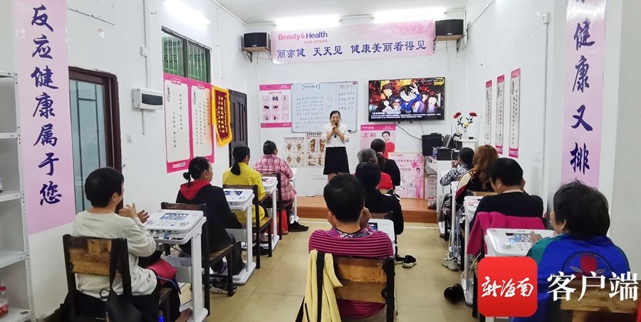 接到报料后,12月1日清晨7点,新海南客户端记者便驱车来到了灵山镇中云小区。记者发现,这家丽亦健女子糊口馆位于小区一楼的一家店肆内。在守候半小时后,该店卷帘门翻开,一名身着粉色大褂的事情职员正在店门口接待前来“体验”的白叟。短短二十分钟内,前来“体验”的白叟就坐满了店内的一个望似不大房间内,这些白叟均为50~70岁之间的中老年末年妇女。