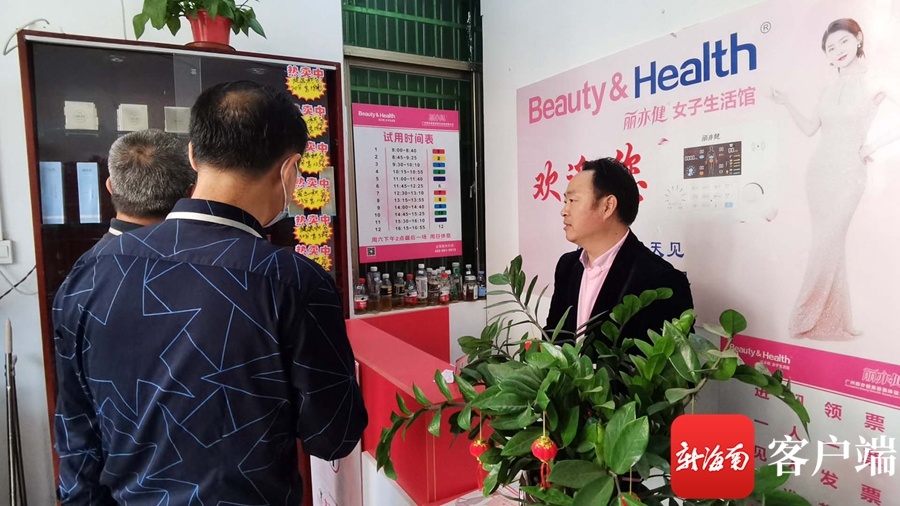 根据所驾驭的环境,记者随后向海口市市场监督办理局美兰分局灵山监管所反映。随后,法律职员对这家丽亦健女子保存馆进行了检查。记者进入到“讲厅”内望到,在这个不大的房间内,挤满了12名中老年妇女,每位白叟的身前都摆着一台白色如小桌子般的仪器,跟着台上事情职员宣讲,台下的白叟个个显得欢快,没一下子还跟着事情职员唱起了歌。